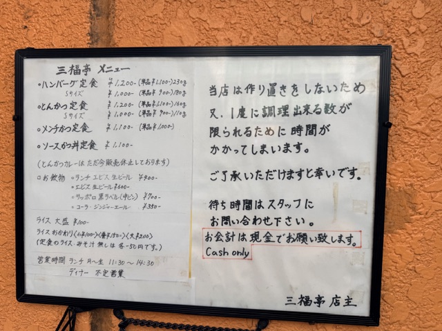 先日、そんな気分の時に訪れたのが、都営新宿線・馬喰横山駅のすぐ近くにある老舗洋食店「三福亭(さんぷくてい)」さんでした。ビジネス街の静かな祝日に、ひっそりと、でも力強く暖簾を掲げています