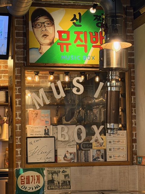 実は、このジュークボックスは、ただのノスタルジックな飾りではない可能性が高いです。韓国では、ポチャ(屋台酒場)やノレバン(カラオケボックス)のルーツにも通じる、庶民的な飲食店での音楽文化が根付いています。